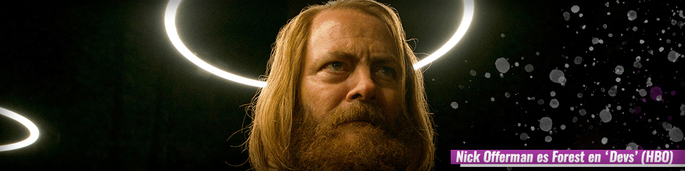 Garland ya ha demostrado el culto de sus obras a la ciencia ficción, y en ‘Devs’ combina a la maravilla este género con grandes dosis de thriller. La temática de una tecnología futurista aplicada a la vida humana toma conciencia en los trabajadores de Amaya, una empresa pionera en tecnología situada en San Francisco. El CEO de la empresa, Forest (un encriptado Nick Offerman muy bien construido), recluta a Sergei (Karl Glusman) para trabajar en uno de los departamentos de la empresa, del cual todos conocen su existencia, pero nadie sabe lo que se hace dentro: Devs.